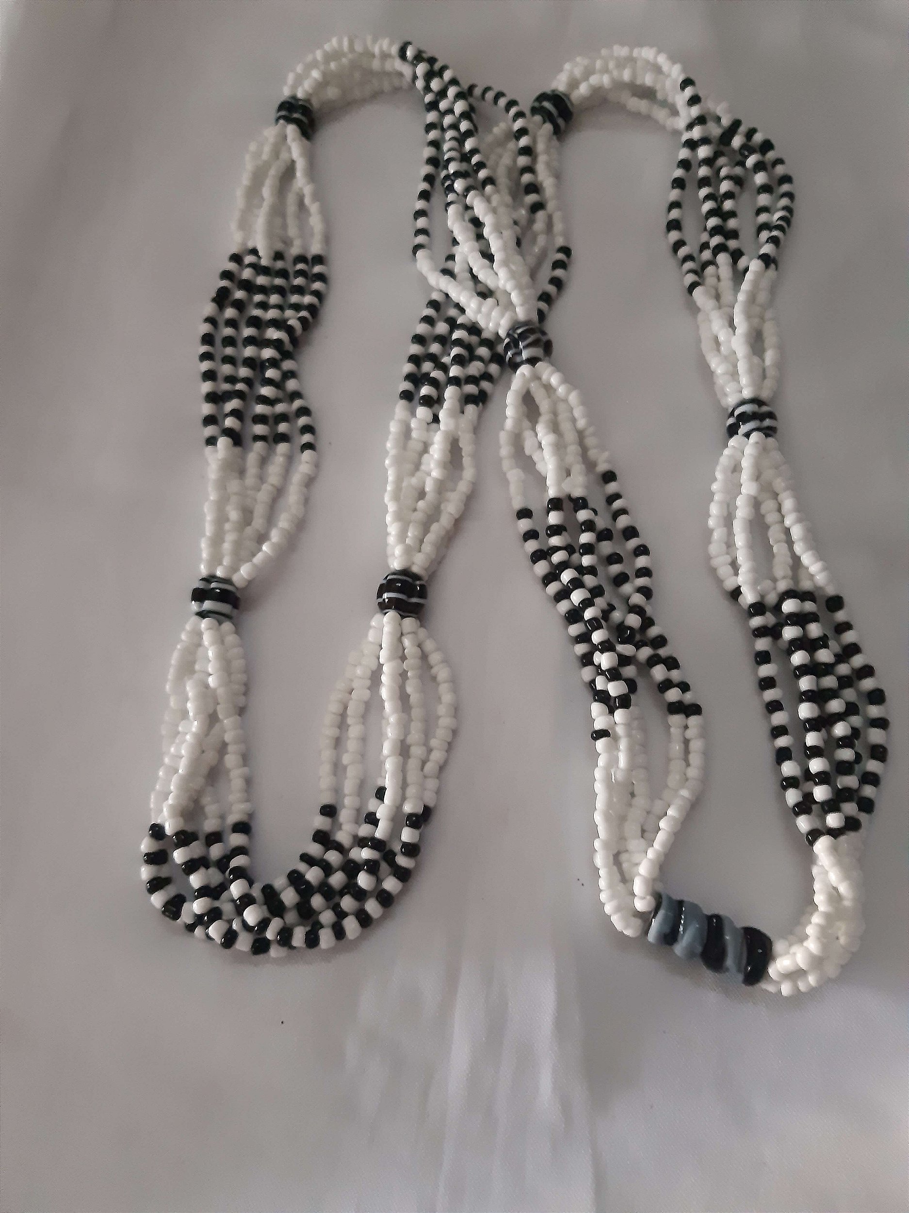 Guia de preto velho/obaluaie na cor preta/branca 57cm 1 firma 6 muranos miçangas 6 fios
