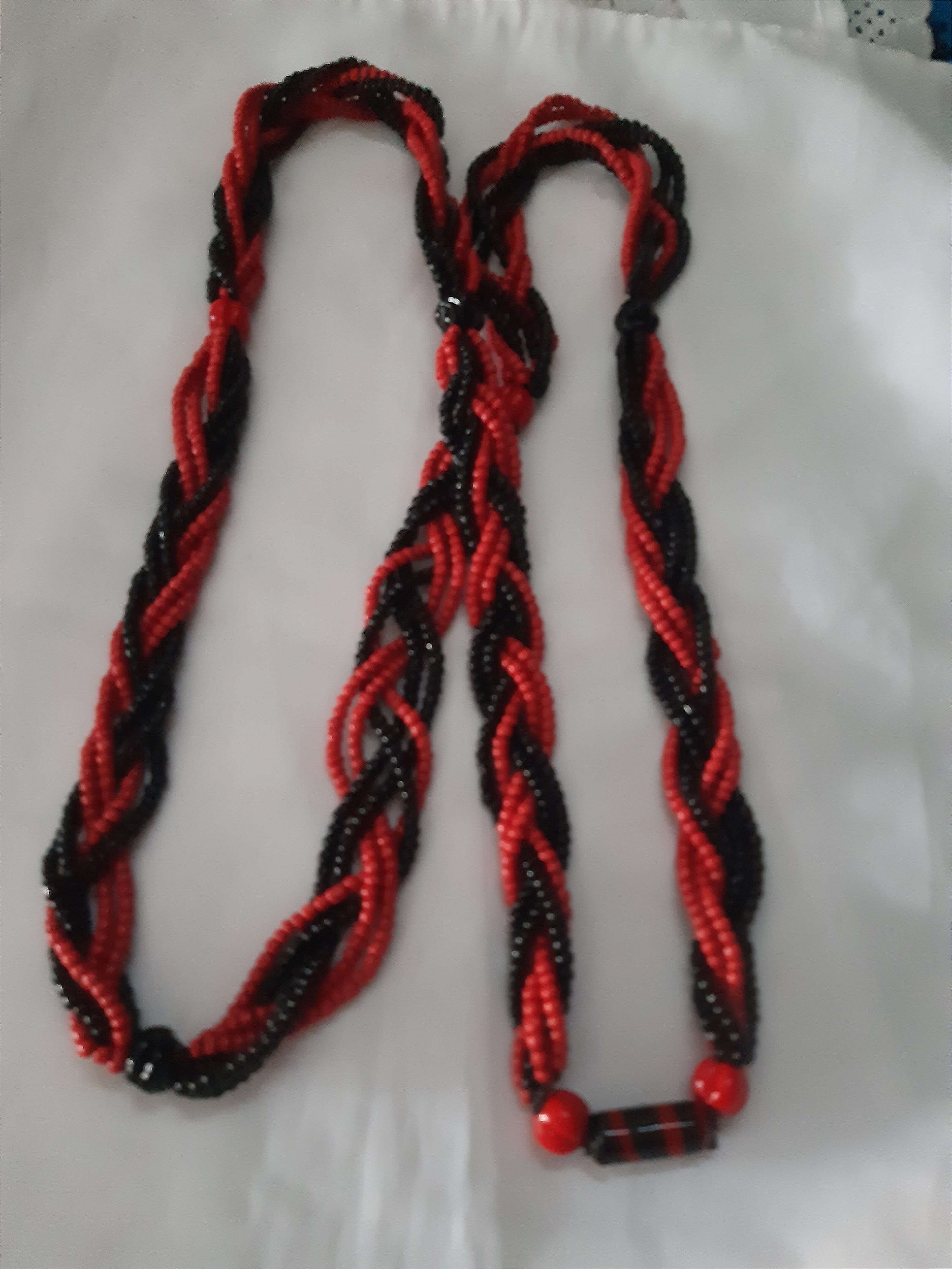Guia de esquerda 64cm trançada 6 fios 1 firma 7 muranos miçangas e fio encerado